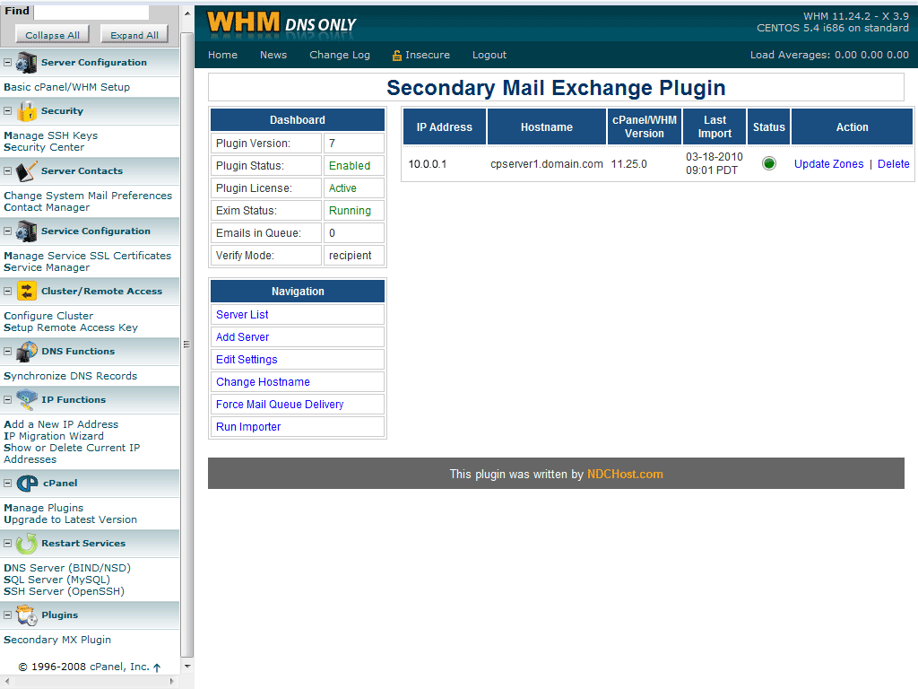 Currently our SMX plugin requires a server with cPanel's free DNSONLY control panel to be installed and functional prior to installation.