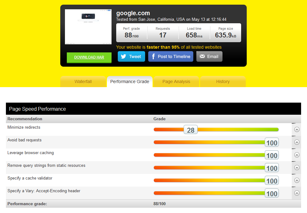Pingdom Speed Test is another great tool that offers the advantage of giving you more detail about how your page is loading. Pingdom offers a standard grading system that will show you how fast you are compared to other websites that use the tool.